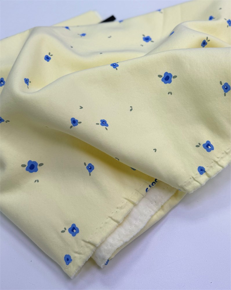 Футер 3-х нитка начес Цветы на сливочно-желтом