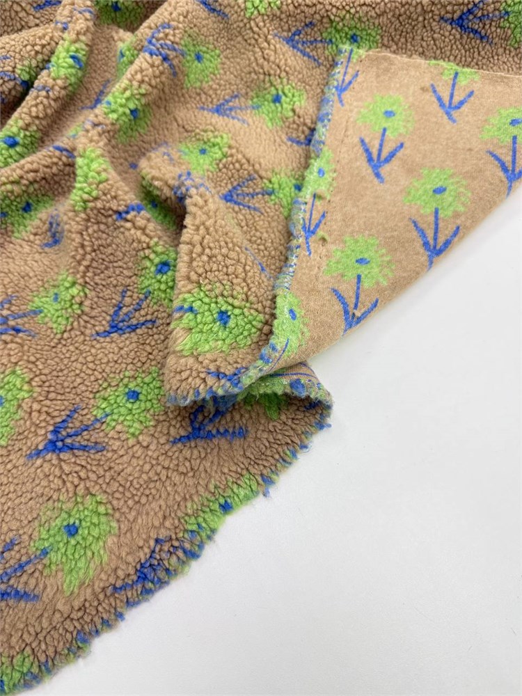 Мех шерпа цветы зеленые на коричневом (мш2)