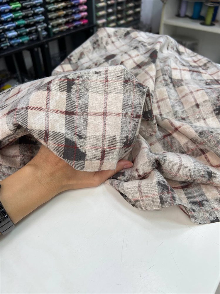 Легкая и мягкая клеточка с эффектом варки. Варка не яркая,очень комфортная. На изнанку не просвечивает. Слегка бархатистое лицо. Идеальная изнанка,которую тоже можно использовать в изделии.