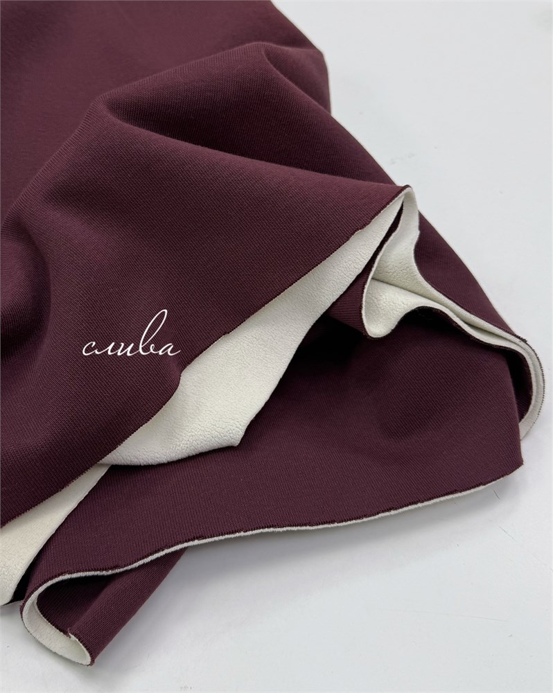 • Полотно состоит из 2х слоев: верхний трикотаж по типу Кулирной глади, низ мягкий флис молочного оттенка. Слои не разделяются.