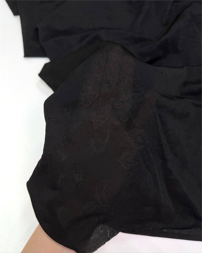 Материал: тактильно очень приятный, хорошо тянется за счет плетения и отлично возвращает свою форму, на полотне крупные цветы, полотно просвечивает, красиво закладывается в драпировку, не мнется, достаточно легкая, срез не распускается.